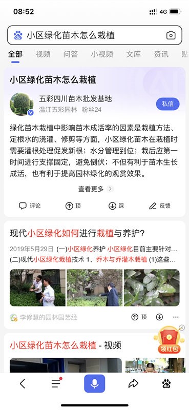 此外,模糊搜索企業(yè)頭條關(guān)鍵詞,也是可能會在百度首頁展示,比如:綠化工程養(yǎng)護(hù)注意、行道樹常用喬木、園林景觀如何設(shè)計(jì)、小區(qū)綠化地被色塊搭配等,搜索仍然首頁展示,全國推廣。