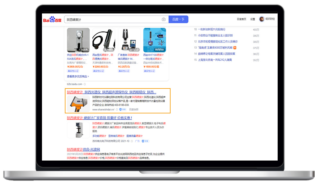 新時(shí)代關(guān)鍵詞:陜西硬度計(jì)、陜西光譜儀、陜西直讀硬度計(jì)、陜西石油硬度計(jì)、西安硬度計(jì)等,均在百度首頁展現(xiàn),準(zhǔn)確鎖定有需求的客戶。