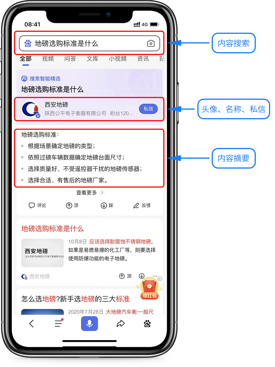 你能看到:在百度置頂首頁,顯示著一個(gè)問答卡片,卡片中包含以下信息:
